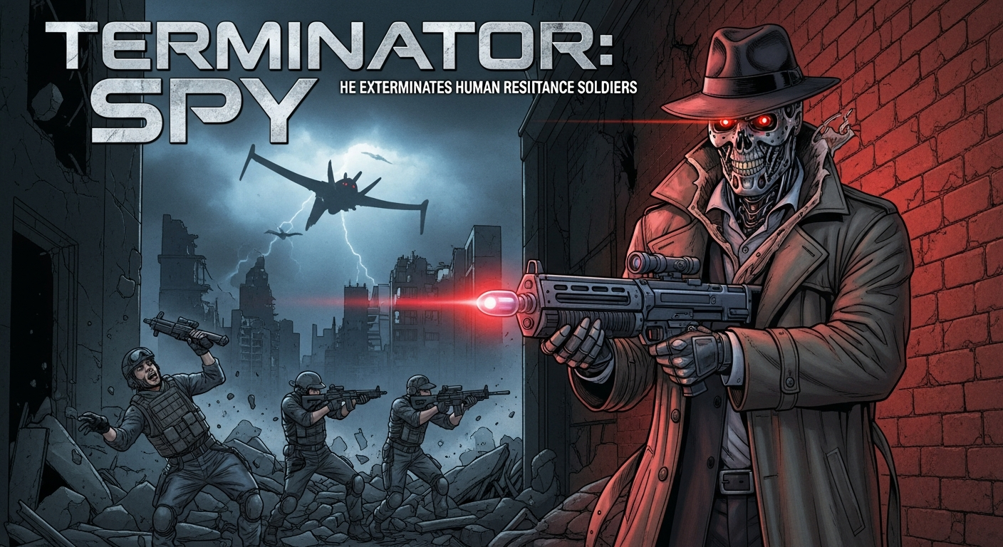 обложка терминатора лазутчика как он истребляет солдат сопротивления людей из игры Terminator: Resistance